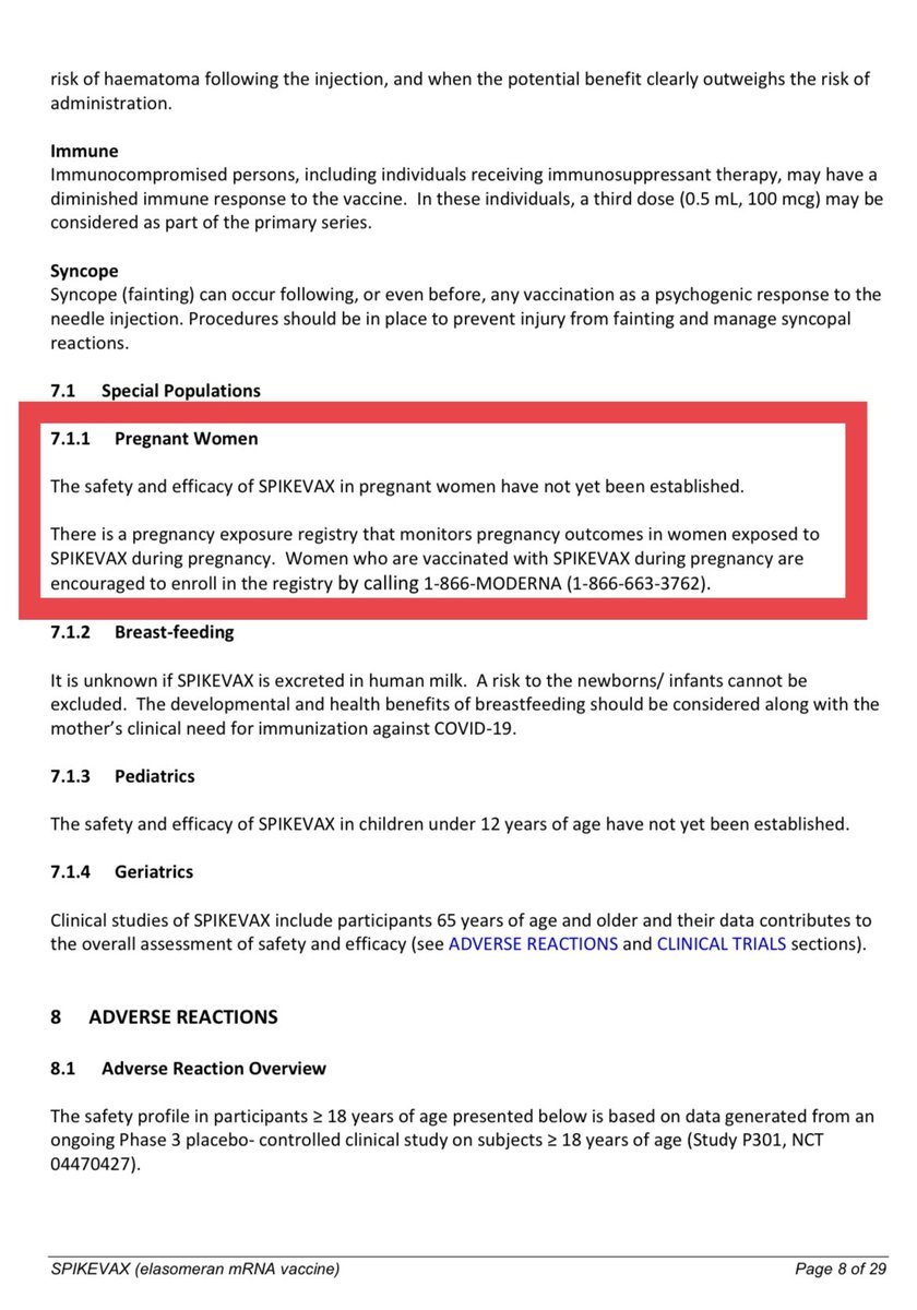 Also that there is a pregnancy exposure registry monitoring outcomes for those exposed to it & encourages preg women given the jab to enroll in that registry as well