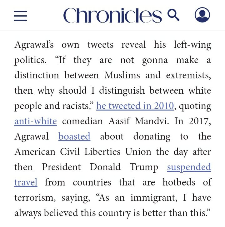 Now, Agrawal had recently talked specifically about focusing on COVID-19 "misinformation," which is a problem because Agrawal is politically progressive (see the third screenshot) and that censorship will only cut one way, not against people saying we should double mask kids