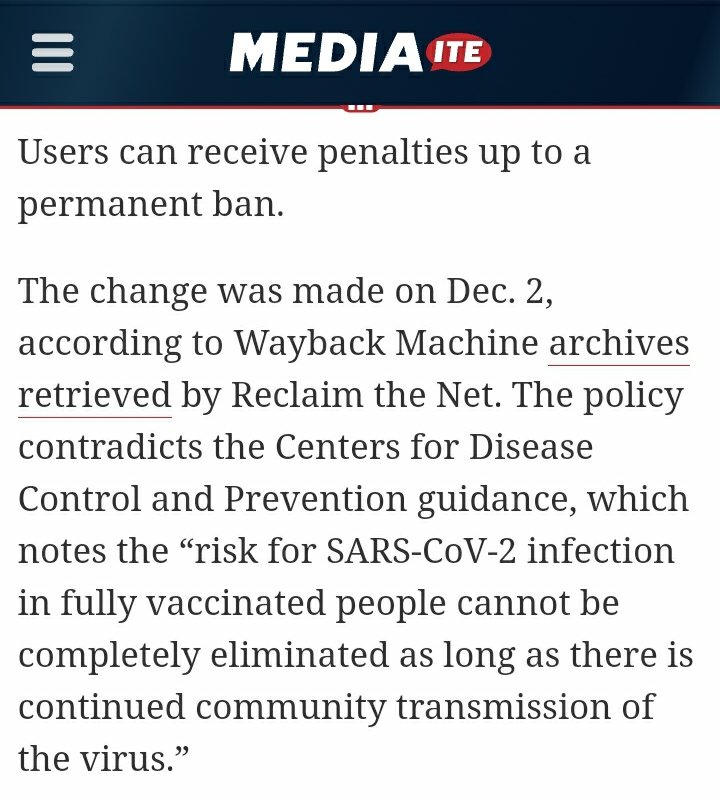 On Dec. 2, Twitter "quietly" changed its terms of service to punish people for COVID-19 "misinformation" under Agrawal. My original thread didn't stress that this appears to have been done stealthily: Mediaite found it by looking at Wayback Machine archives. This is important.