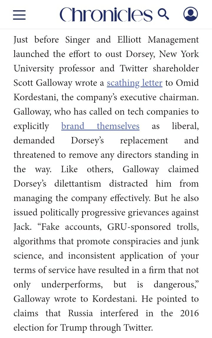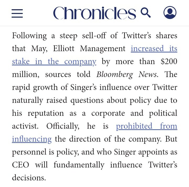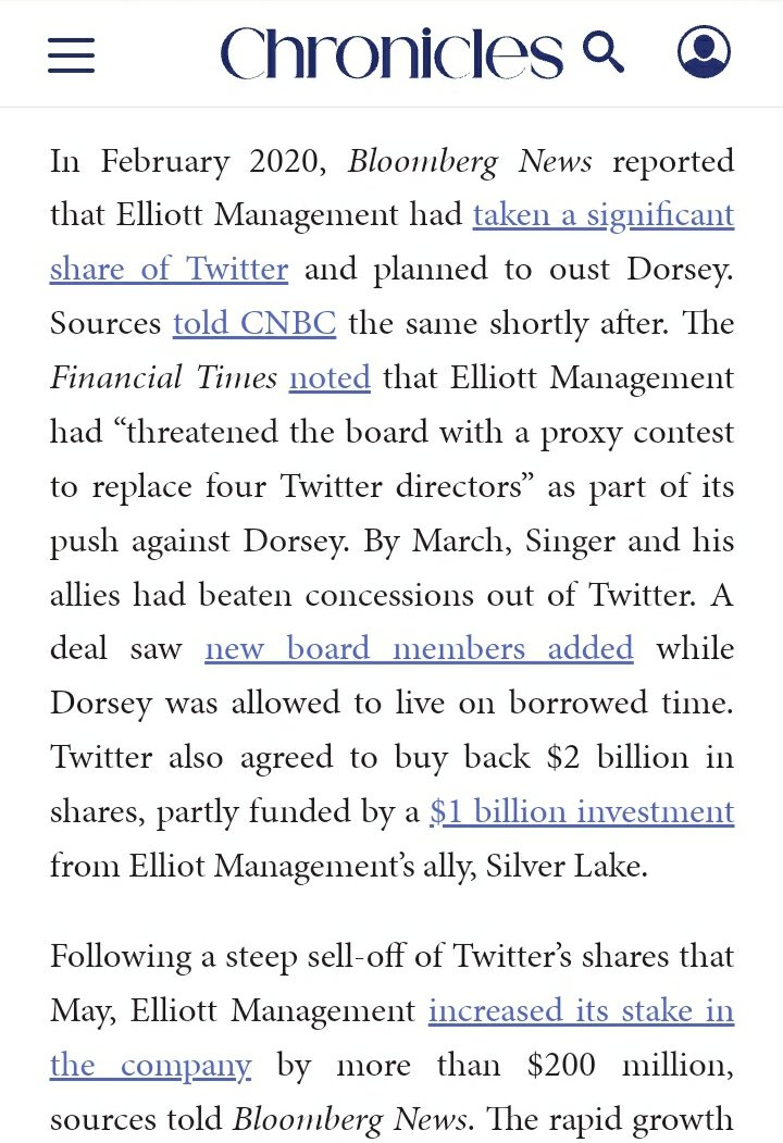 Again, Singer was *directly* involved in ousting Dorsey and appointing Agrawal. This is not a Democrat, but a major GOP donor with connections to Trump, despite the Russian dossier history