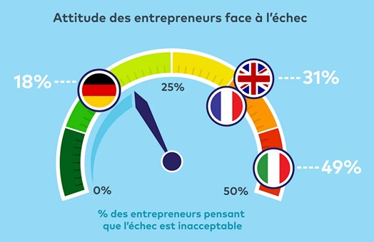 Les entrepreneurs français considèrent l’échec comme préjudiciable plutôt que comme une occasion d’apprendre. Selon une étude de 2018, ils sont même 31 % à juger l’échec comme étant "inacceptable" et 66 % trouvent qu’il est difficile de rebondir après avoir échoué.