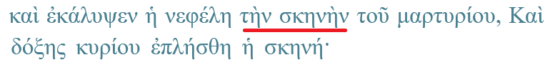 "La nube cubrió la 𝐓𝐢𝐞𝐧𝐝𝐚 (σκηνή -skené-) del Encuentro y la 𝐆𝐥𝐨𝐫𝐢𝐚 (δόξης-doxes-) del Señor llenó la Morada". Éxodo 40, 34.