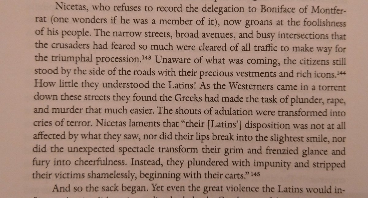 But the semiotics of Byzantine politics were completely alien to the victors. They interpreted the surrender of the city not as a peaceful handover of power, but as an invitation to sack. The roads had been cleared for their coronation procession, only making their job easier.