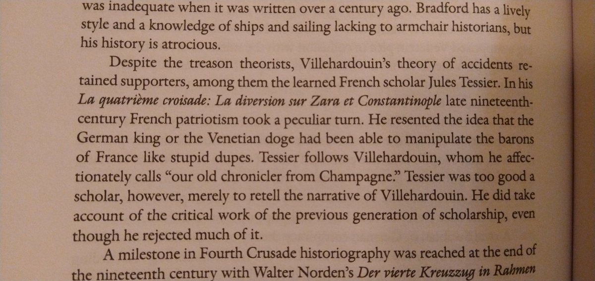 "In his book, late 19th-century French patriotism took a peculiar turn. He resented the idea that the German king or the Venetian doge had been able to manipulate the barons of France like stupid dupes."