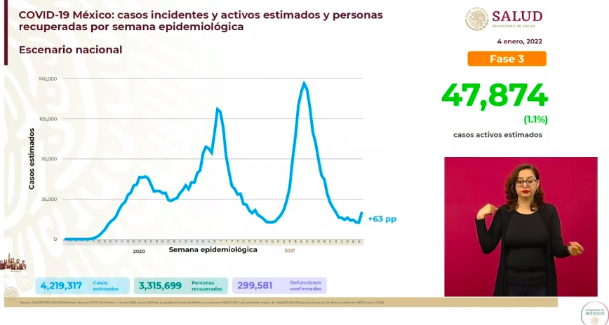 Durante la primera semana epidemiológica de 2022 y las últimas dos del 2021, hay en México 47 mil 821 casos activos estimados, detalla el secretario de Salud, Jorge Alcocer.