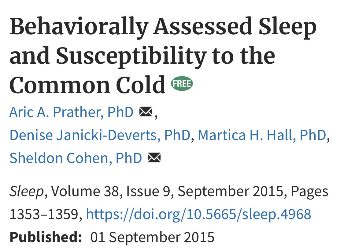🧐 Estudio “clásico” publicado en 2015 por Prather et al. dónde administran virus a personas: ¿las que dormían menos tenían más probabilidad de desarrollar un resfriado? Vamos a verlo👇🏻