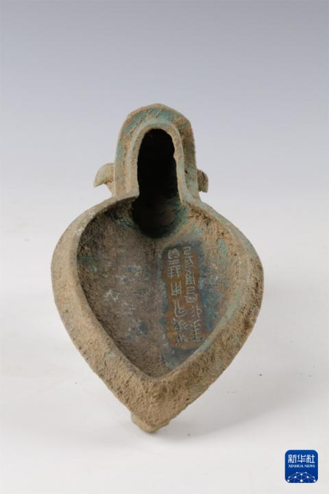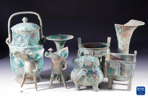 Artifa perunggu yg ditemukan di situs. Perhatikan artifak kiri, ada inkripsi 12 karakter hanzi dgn gaya jaman tsb. Sayang laporan media tidak mengikut sertakan interpretasi dari karakter2 tsb.