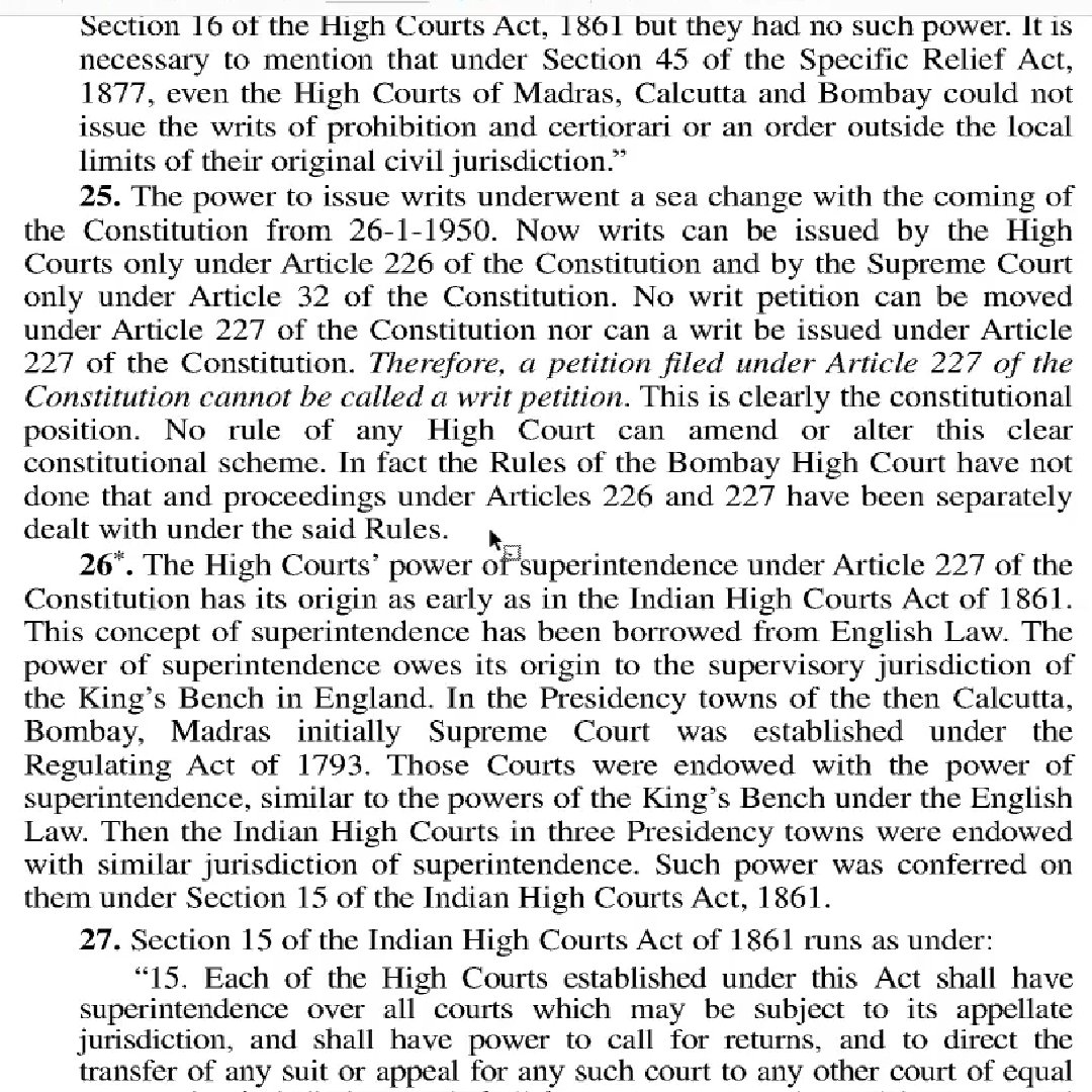 Rohatgi: We have come under A.226 and A.227, it has to be seen whether the petition is predominantly under A.226 or A.227.