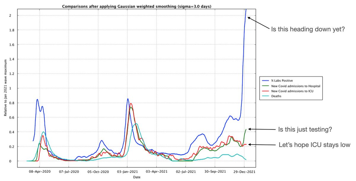 I should caution that if this year's wave is like last years wave then the hospitalization occupancy peak will be around the 18th/19th of Jan... I'll have to tack a fit onto hospitalization @USMortality@MLevitt_NP2013 as that should allow forecasting I suspect