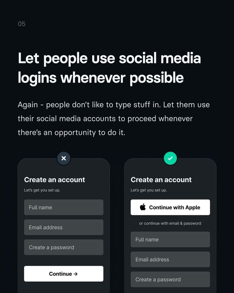 3๏ธโฃ - Let people use social media logins whenever possible.