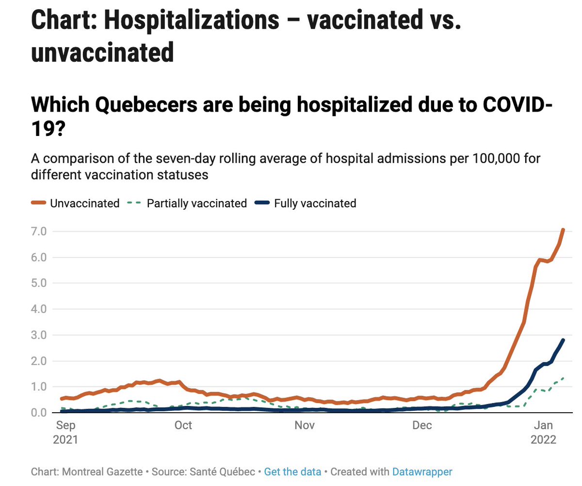 Aunque hay un aumento impresionante de casos (15,654/media de 7 días) en la provincia de Quebec, el aumento de hospitalizaciones no es proporcional...aun así es suficiente para causar estragos en hospitales.