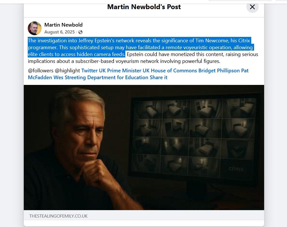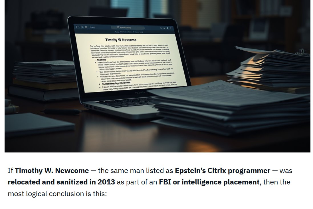 "If Timothy W. Newcome — the same man listed as Epstein’s Citrix programmer — was relocated and sanitized in 2013 as part of an FBI or intelligence placement, then the most logical conclusion is this: thestealingofemily.co.uk/2025/08/08/foi…