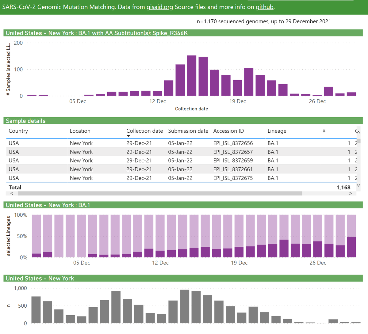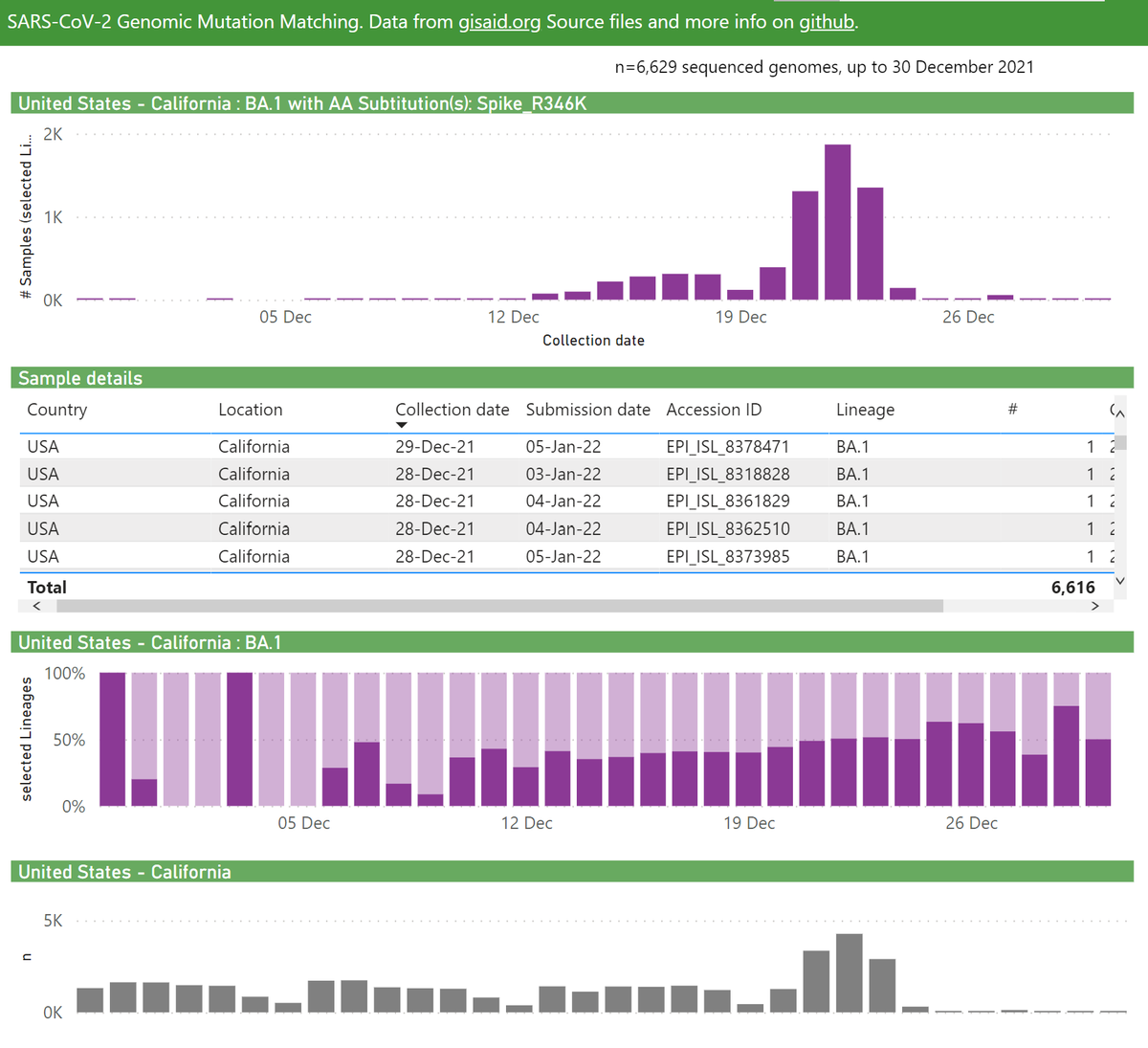 Here's an analysis of the frequency of the Spike R346K mutation in BA.1 (Omicron) samples from the USA and Mexico. This mutation is understood to help evade immunity.