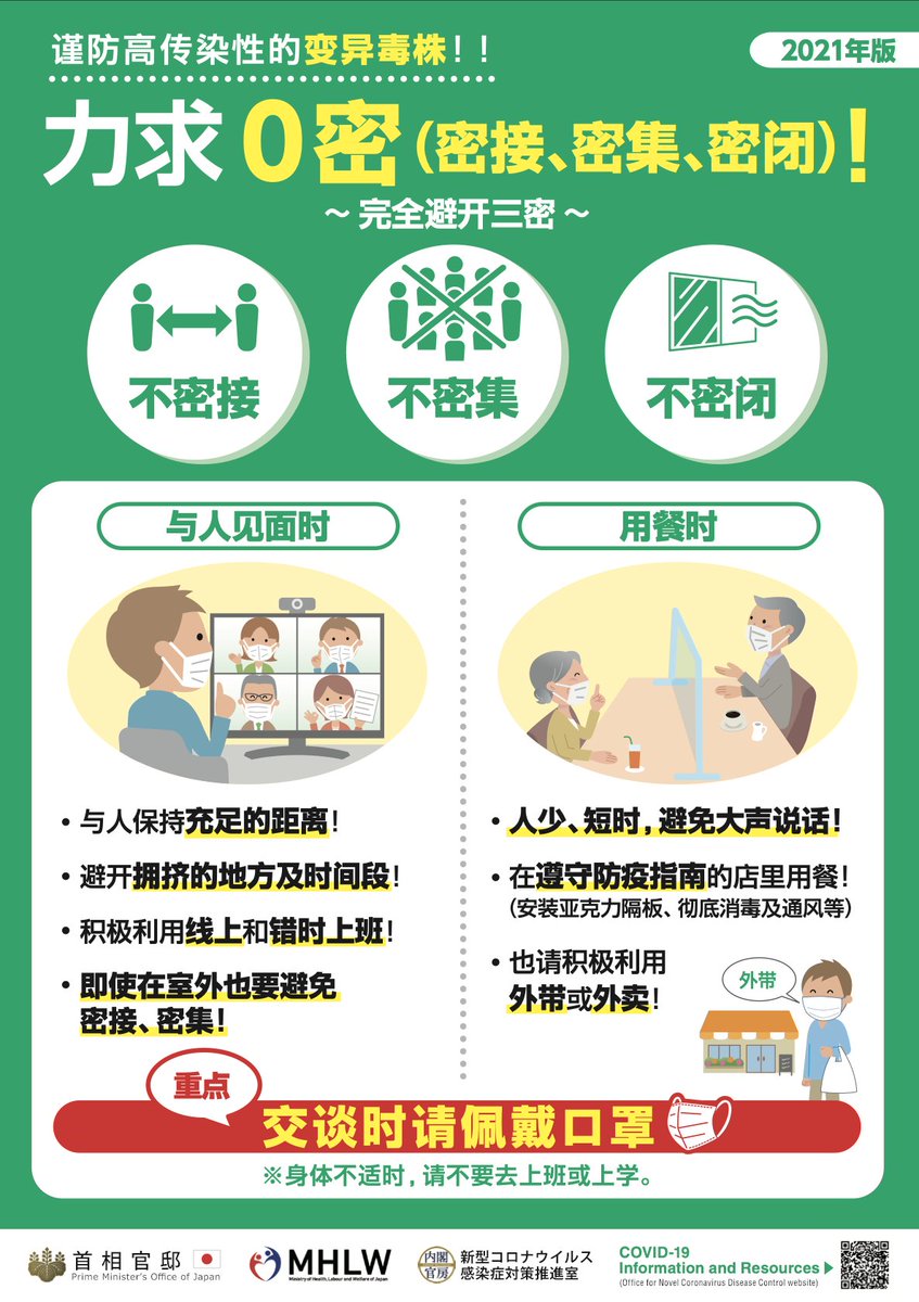 Actually, a more accurate translation is “let's aim for zero close contact”. Even more emphatic here. Eliminating the three forms of close contact: physical closeness, crowding, and closed spaces