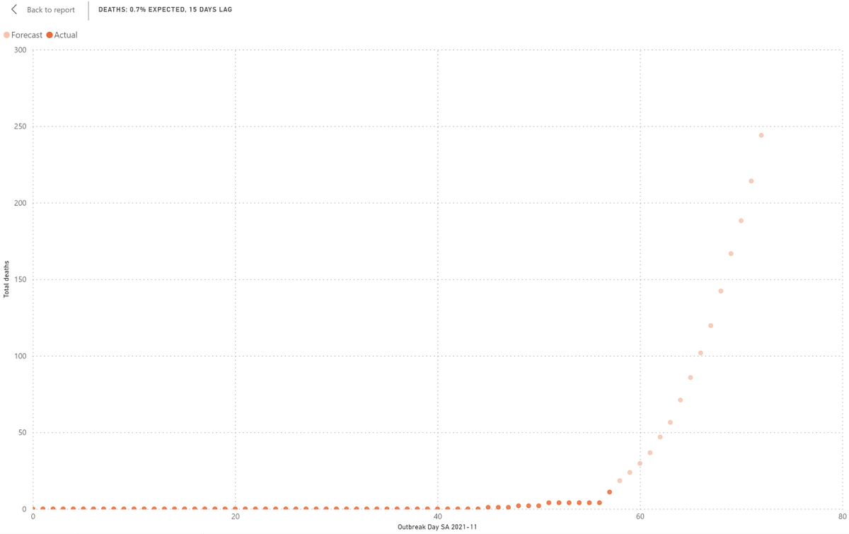 Sadly, deaths are slightly ahead of the forecast, noting the sample size is very small.