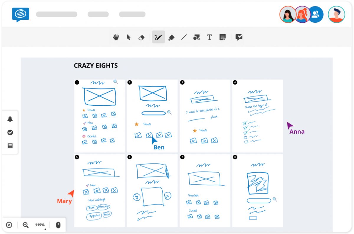 The βCrazy Eights (8βs)β exercise is a core design exercise that requires you to sketch 8 different designs, each with a new idea for solving the userβs problem in only 8 minutes.