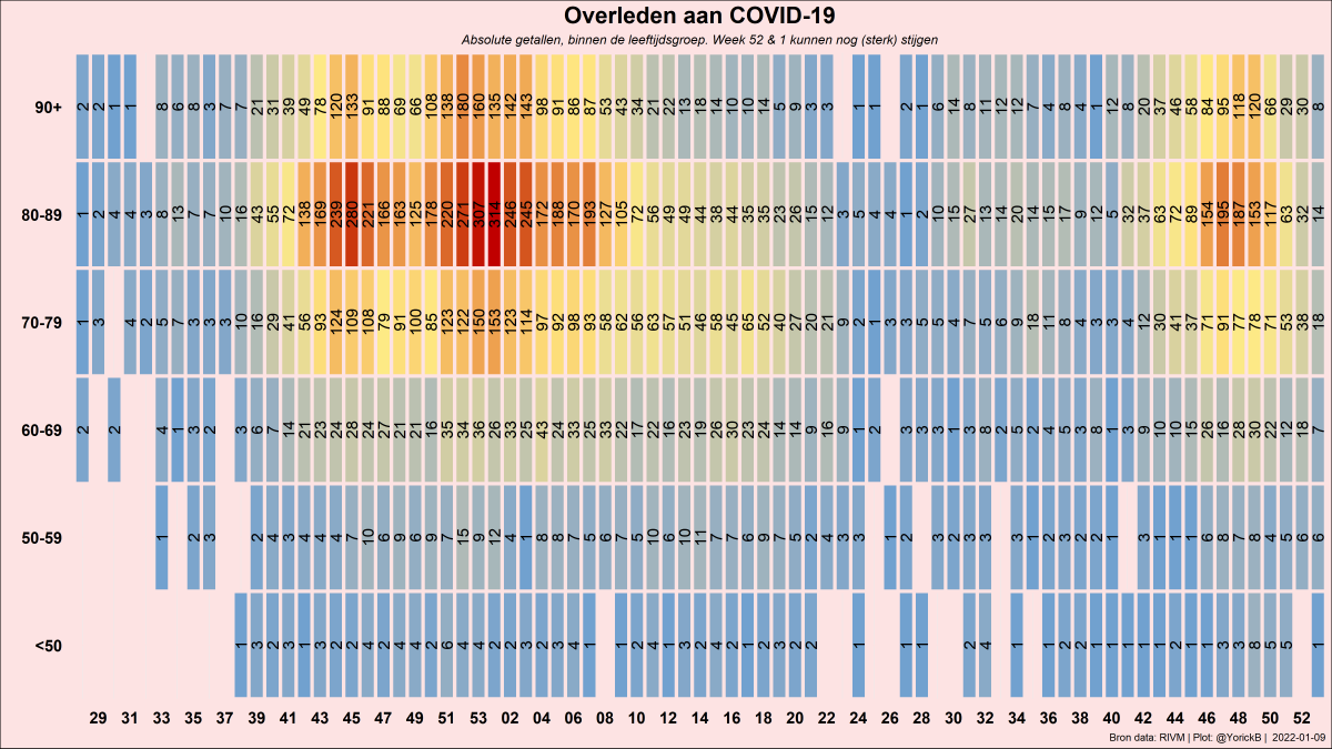 maar opvallend: ook 50-59 blijft achter qua aantal opnames in de ziekenhuizen.