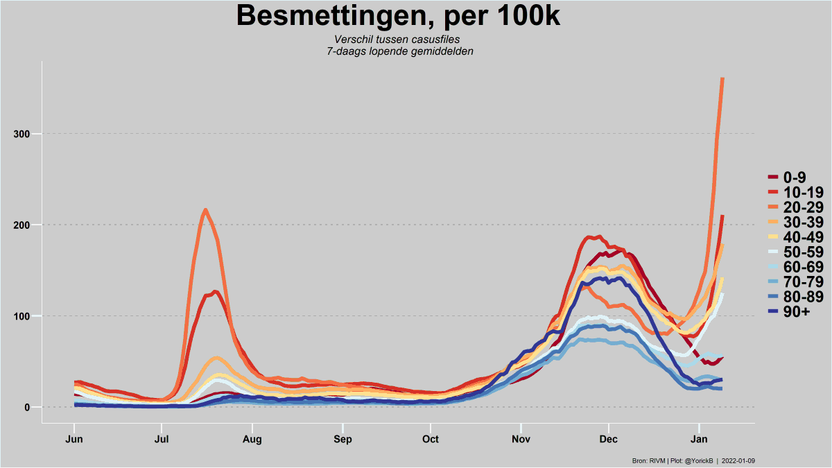 Het lijkt er nu wel echt op dat Omicron zorgt voor meer opnames bij de jongeren (nog geen booster).