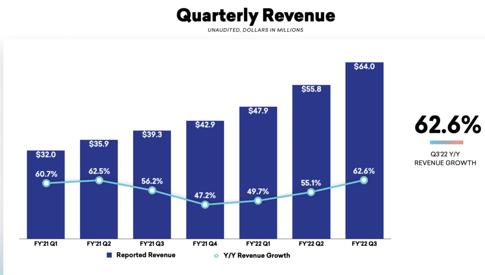 Braze is yet another SaaS leader growing even faster past $200m ARR. After a dip to a still very impressive 50%-55% growth at IPO, Braze is now growing even faster, at 62.5% a year at $250M+ ARR. Woah.