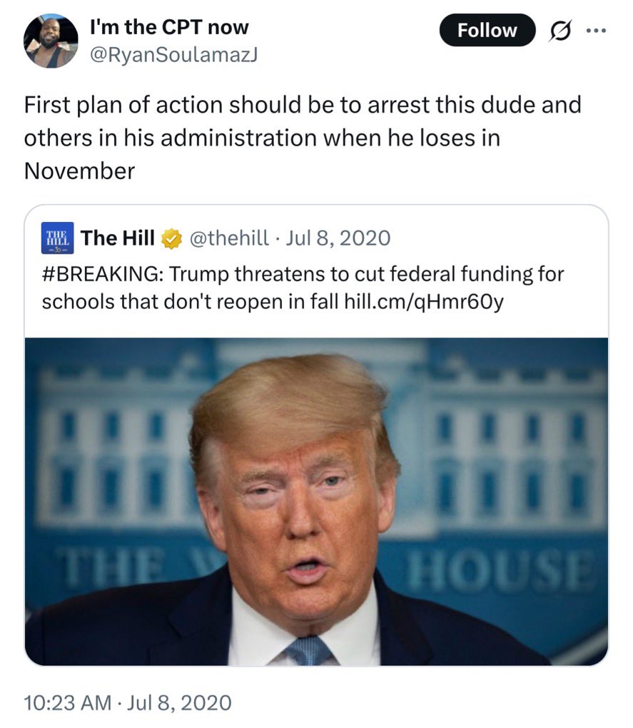I’m not sure how the public can trust him to fairly apply the law when it seems he feels murder is an appropriate “consequence” for being a conservative.
