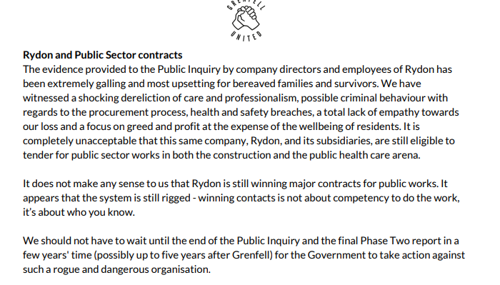 However, you would have to ask: why now? Bereaved and survivors group Grenfell United have been pushing for this exact move since 2019. Below is a letter they sent to Robert Jenrick in August 2020:
