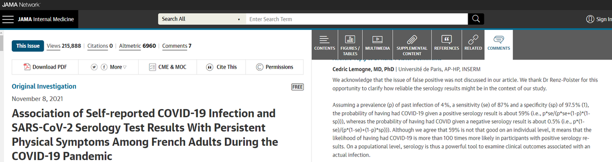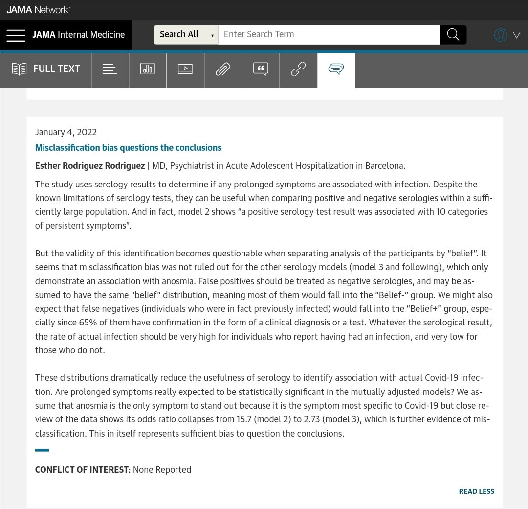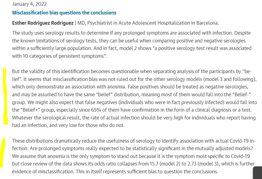 La réponse est désormais que JAMA a validé un commentaire pointant cette erreur de classification différentielle, ici 👇 5/n