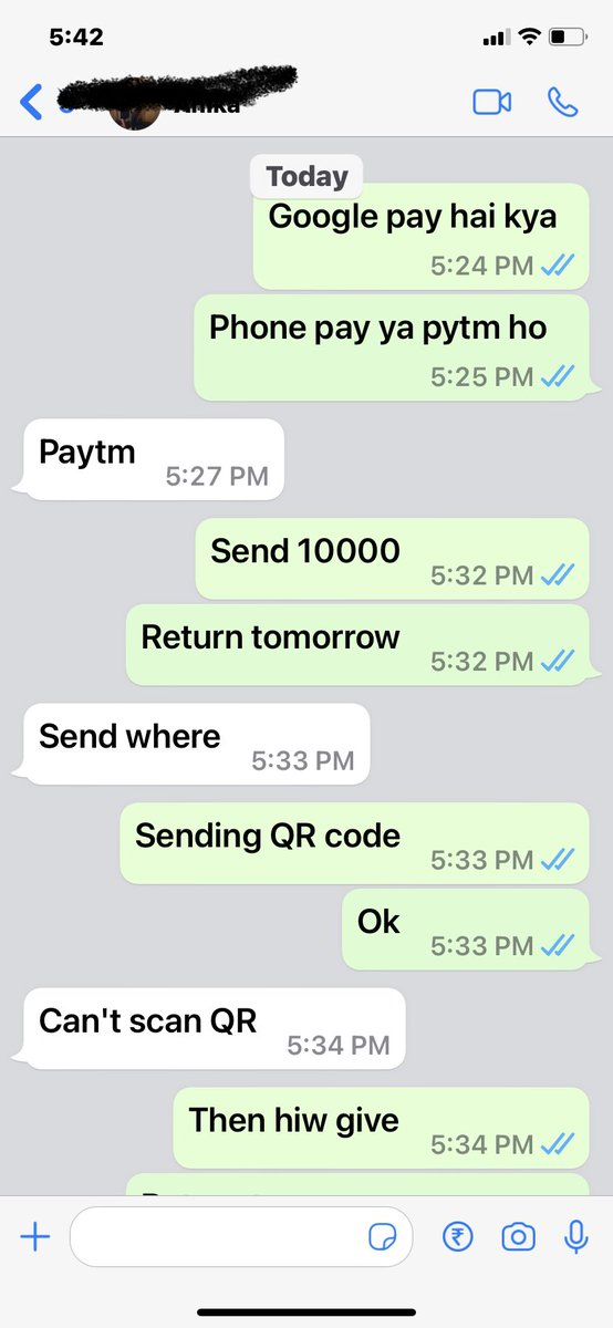 A few minutes back my entire family - one by one - started getting WA messages from my eldest sister to send money via paytm or google pay …
