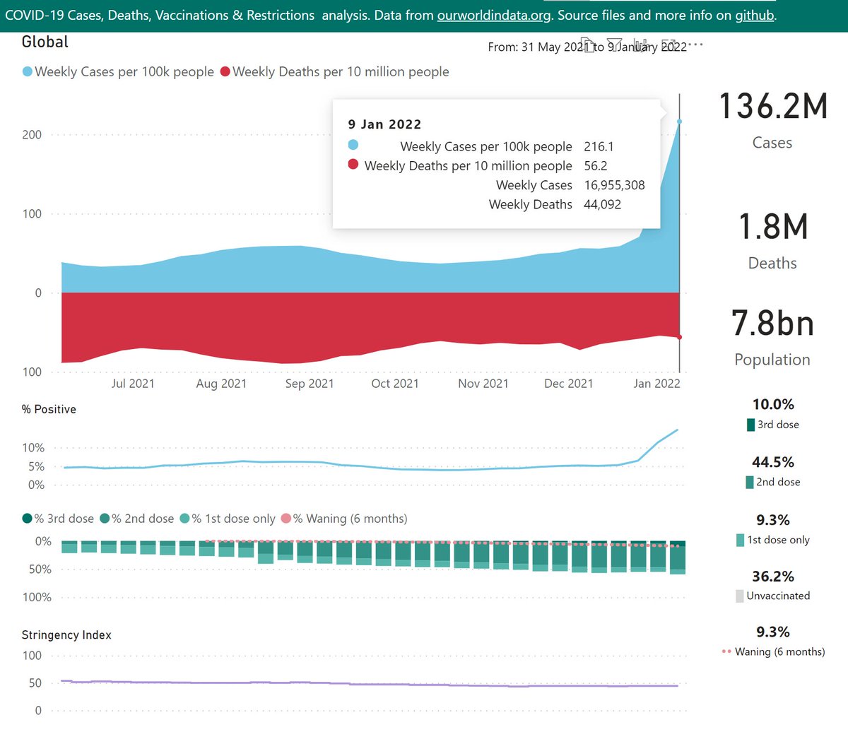 At the global level, Omicron has driven an amazing surge in the last 2 weeks.