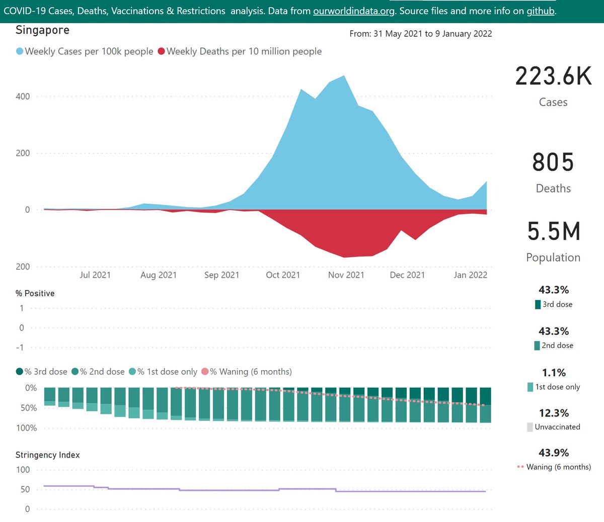 Singapore recently beat back a serious Delta wave, and while Omicron is spreading the case rates are relatively low so far.