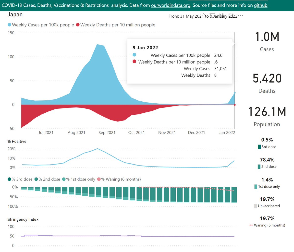 Japan successfully suppressed their Delta wave around the Olympics and have enjoyed very low case rates for several months.