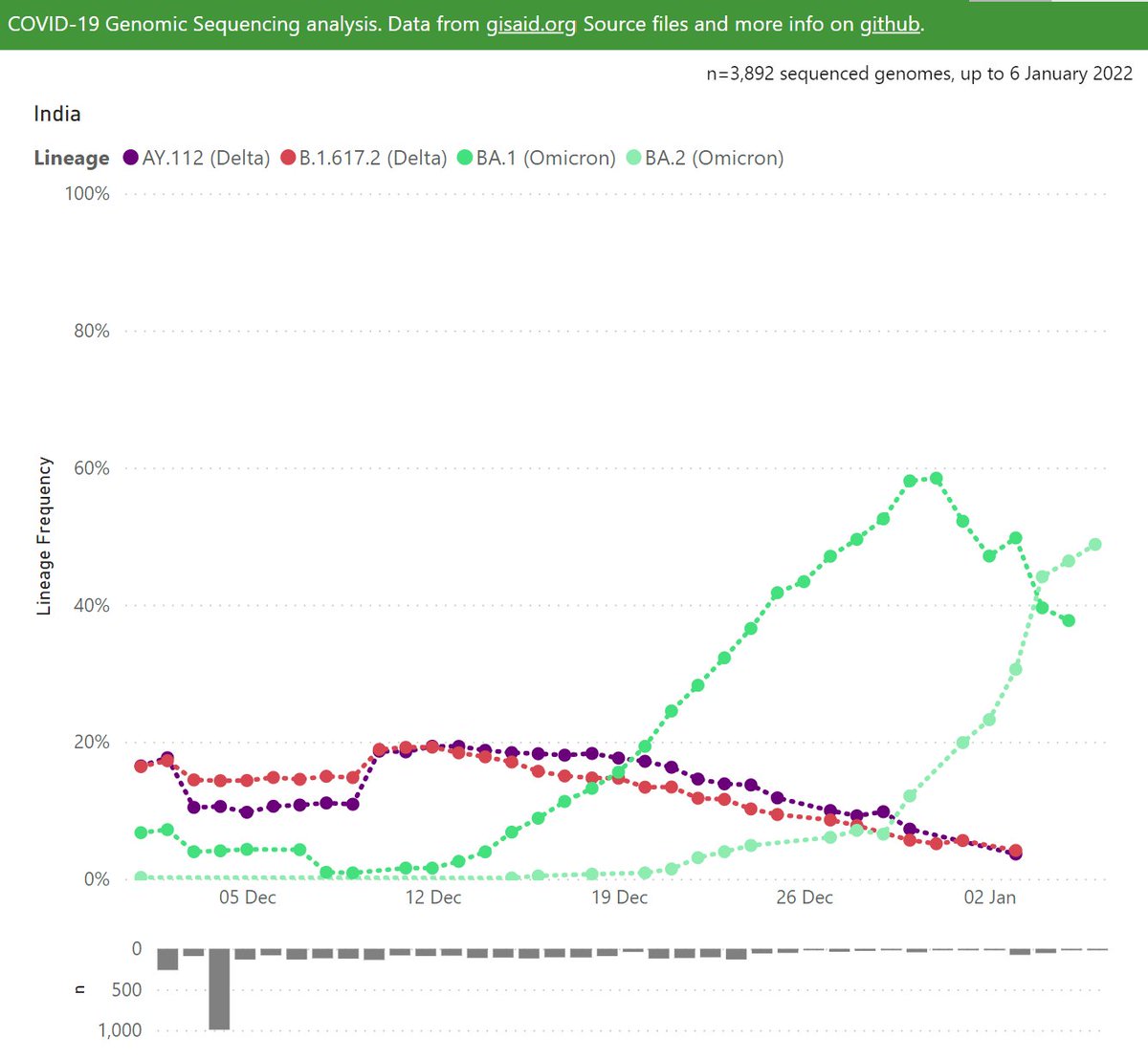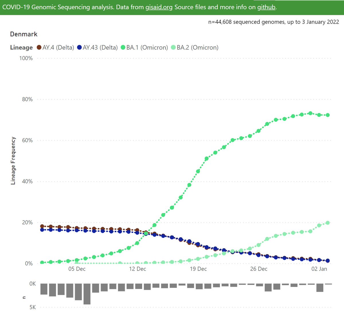 At the global level, Omicron has driven an amazing surge in the last 2 weeks.