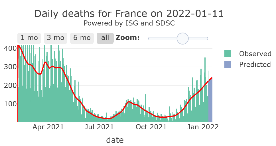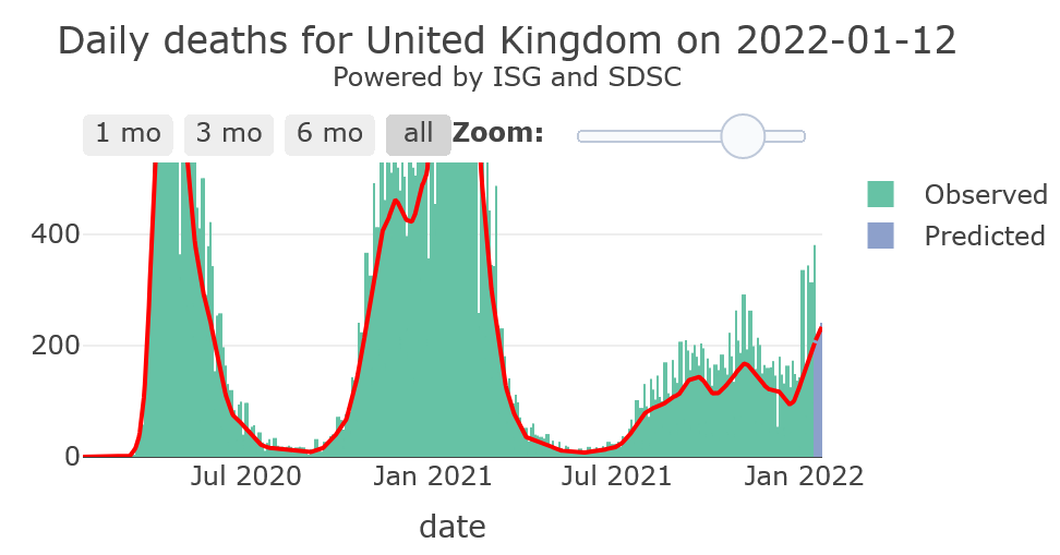 360,469 cases and 228 deaths/day foreseen by Jan 18, if at same pace;