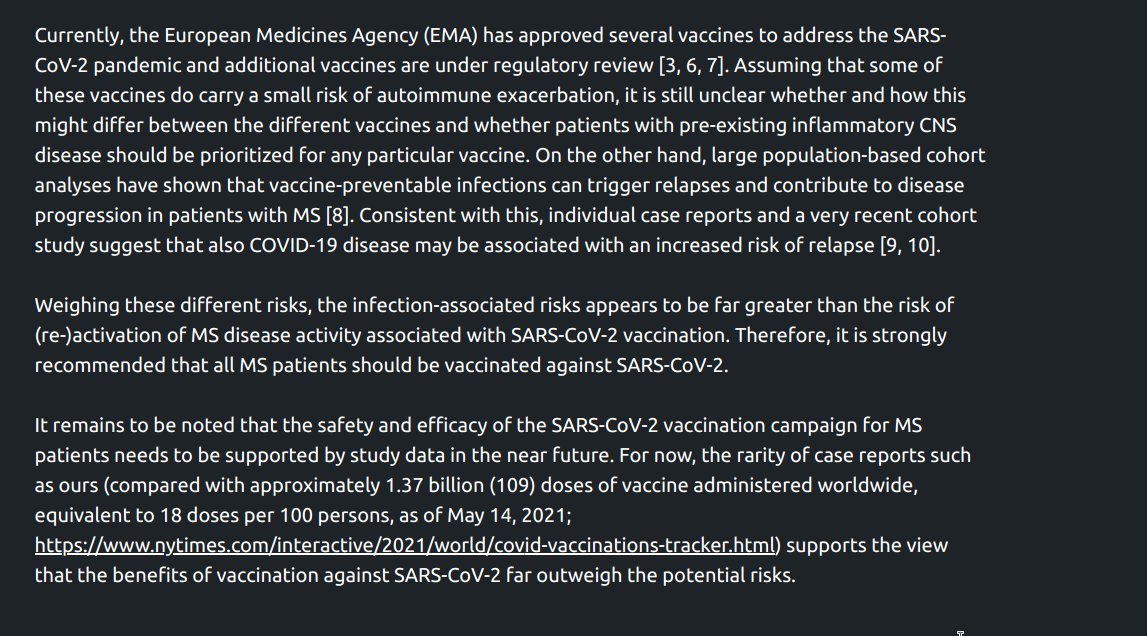 En gros, c'est clair, ils recommandent sans retenue la vaccination. Pour eux les éventuels risques découlant de la vaccination sont bien inférieurs aux risques découlant de la maladie elle-même.