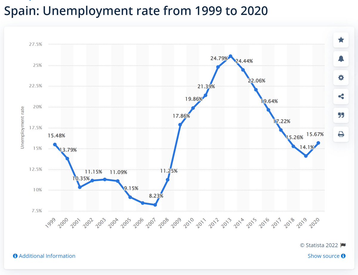 Pra quem não sabe, Mariano Rajoy fez uma reforma trabalhista em 2012 quando o desemprego estava em 24%. Em 2019 caiu para 14%.