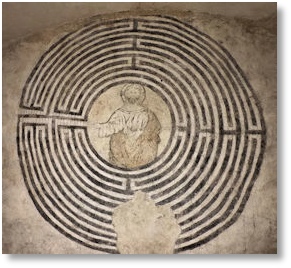 z błądzeniem po l. Od pocz. wśród chrześcijan odrzucono przemoc i traumę towarzyszącą odczytaniu staroż. mitu. Całkowicie odmienne i związane z wiarą znaczenie labiryntu osiągnęło swój szczyt w Średniowieczu, kiedy najpierw pojawiło się ono w rękopisach, a następnie jako element