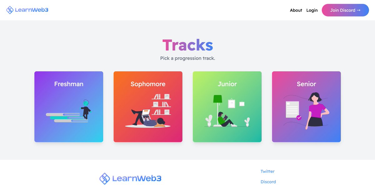 Master web3, blockchain, NFTs, and Ethereum by going through a series of learning stages: Freshman, Sophomore, Junior, Senior. I strongly recommend 🔥 @LearnWeb3DAO