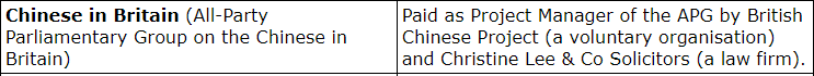 8/20 Lee also played a crucial role setting up the All-Party Parliamentary Group (APPG) "Chinese in Britain". Her website is now down, predictably, but here is a screenshot I took during thesis research, and an image of records showing funding