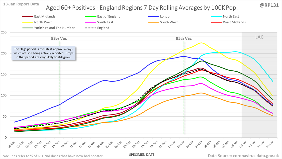England regional rolling average positives (per 100K population) in the 60+ age range: