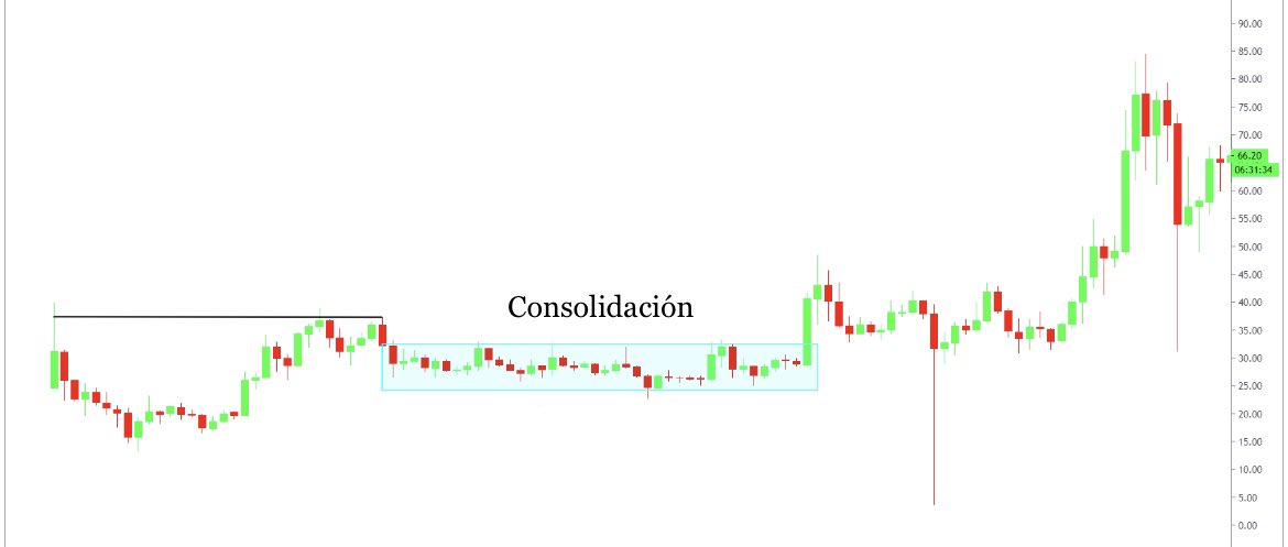 2️⃣ En este caso tras el patron Cup and handle se produce un período de acumulación (algo muy común). Por lo tanto en este punto entraríamos a tratar de adivinar si se trata de una consolidación alcista o no. 👇👇