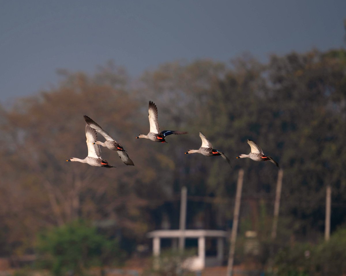 Pic 2: A flock of spot-billed ducks take flight over Magadikere in Karnataka's Dharwad dist.