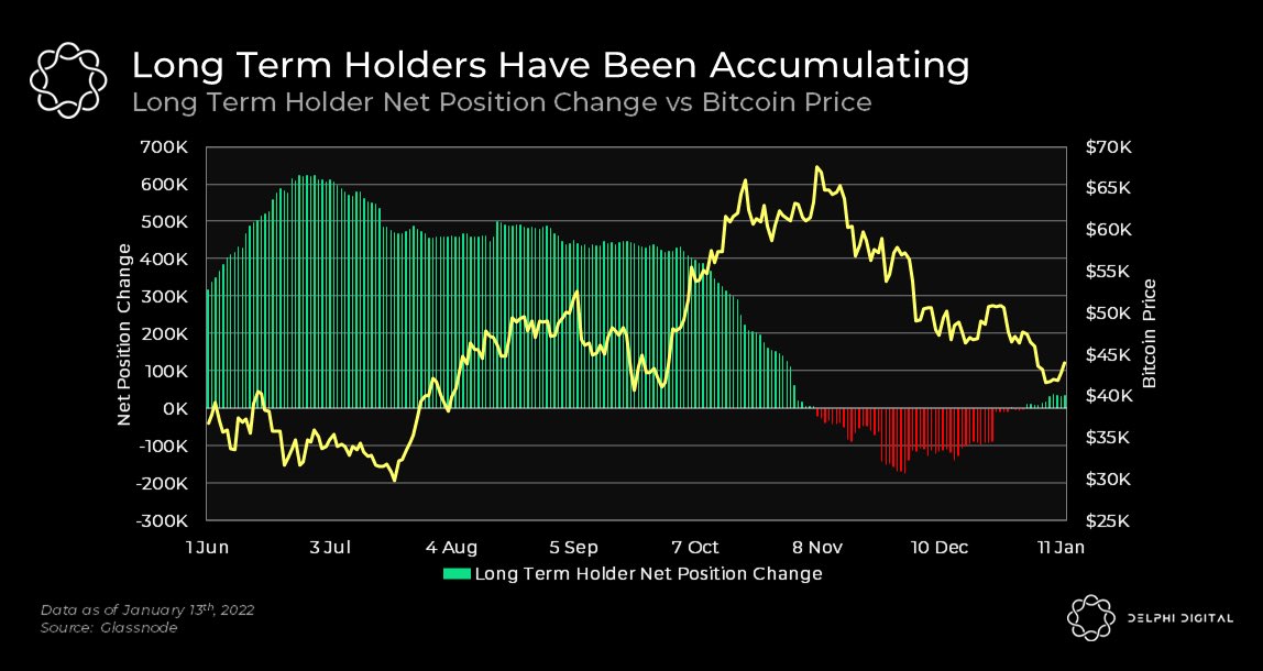 3/ On-chain data shows that throughout January’s price slump, long-term holders have accumulated bitcoin after months of offloading bitcoin at the end of last year.