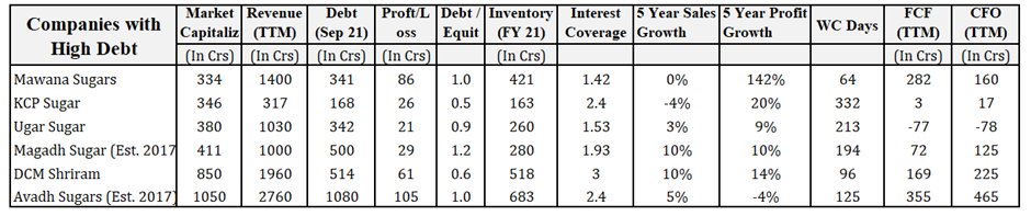 Elimination Rules: 1. Remove cos whose D/E is more 2 2. Remove cos whose Interest Coverage Ratio is less than 1. 3. Remove cos who are in Loss (on TTM & 2021 basis).