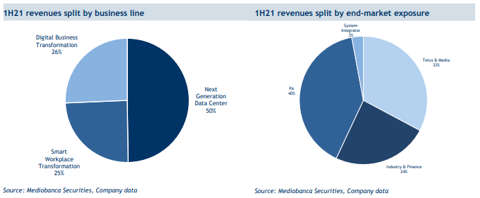 El mercado potencial tan solo en Italia es de €20B y la compañía factura unos €800M, tiene un 4% de la cuota de mercado desde 2018 aproximadamente y es uno de los lideres del país en IT, este mercado crece al 10% aprox. pero no solo eso, si no que ademas el gobierno 3/n