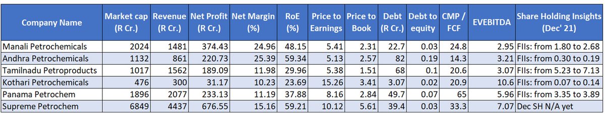 2/n Why am I talking about Manali Petro? 1. Bcoz what used to be a revenue of 170-200 crores per quarter 2 years ago has jumped to 436 crores for Q2FY22 2. Because what used to be ~10% OPM two years ago jumped to ~36% for Q2FY22 3. FII shareholding went up to 2.68%, highest ever