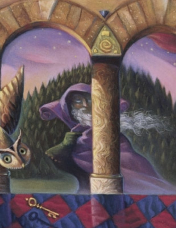 Так откуда взялся этот дядя с трубкой? Тейлор рассказывает, что ему прислали незаконченную рукопись книги и попросили нарисовать для задней обложки «какого-нибудь волшебника». Не долго думая, художник изобразил усреднённого британского мага, срисовав его с собственного отца.