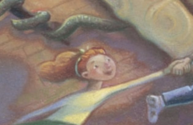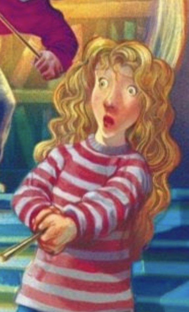 Гермиону художница рисует по большей части круглолицей (рисунки 1-2), у Джинни — лицо более вытянутое (рисунки 3-4). У девочки с обложки «Тайной комнаты» овал лица, скорее, круглый, но откуда такая рыжина волос, да и нестыковка по сюжету? 🤔 Короче, я запутался.