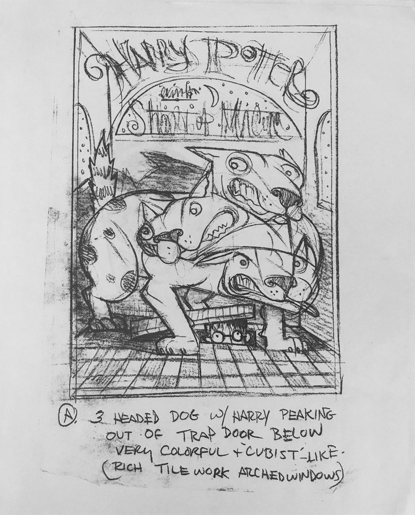 Опять же, всем известна история о том, что американский издатель заменил «философский камень» на «камень волшебника» (sorcerer's stone), потому что боялся, что «философия» в названии отпугнёт детей в Штатах. Но был вариант и радикальнее, и он попал на ранний скетч обложки!