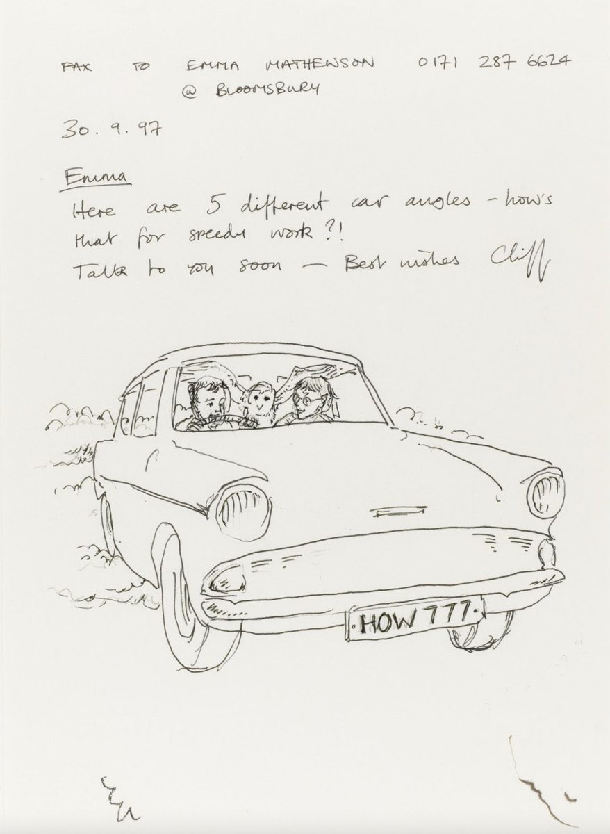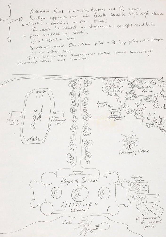 Эти рисунки Роулинг выполняла ещё до выхода фильмов, а некоторые — в период работы над книгами. В частности, на мятой картинке ниже помимо Гарри (Harry) присутствует некий персонаж по имени Гэри (Gary) — он крайний справа. Так в черновике «Философского камня» звали Дина Томаса.