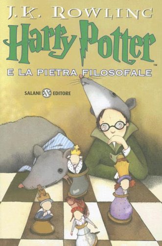 Художница Серена Рильетти рисовала обложку «ФК», не читая книгу. Ей рассказали только, что дело происходит в школе волшебников, в которую можно взять с собой крысу, а в финале герою предстоит сложное испытание, связанное с шахматами. В первом издании у Гарри даже очков не было!