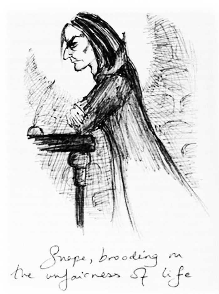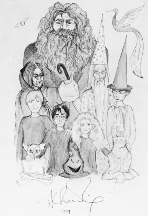 Из этих рисунков понятно, что Роулинг сильно влияла на кастинг актёров в фильмах, либо её скетчами руководствовались продюсеры. Снейп, Дамблдор и Хагрид в кино — вылитые.